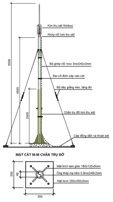Bản vẽ chi tiết kim thu sét được giới thiệu áp dụng cho nhà ở.